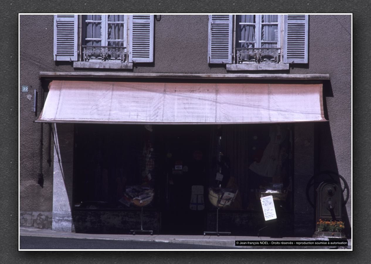 Sancergues. Une boutique de "nouveautés". Pour moi, c'est dans ce genre de magasin que les grands-mères achetaient leurs inévitables blouses. (1980)